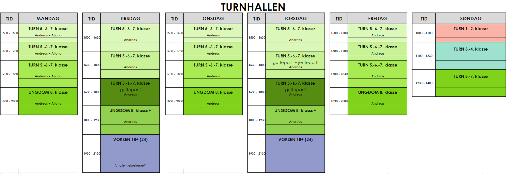 - tirsdag + torsdag 1630-1800 gutteparti +jenteparti